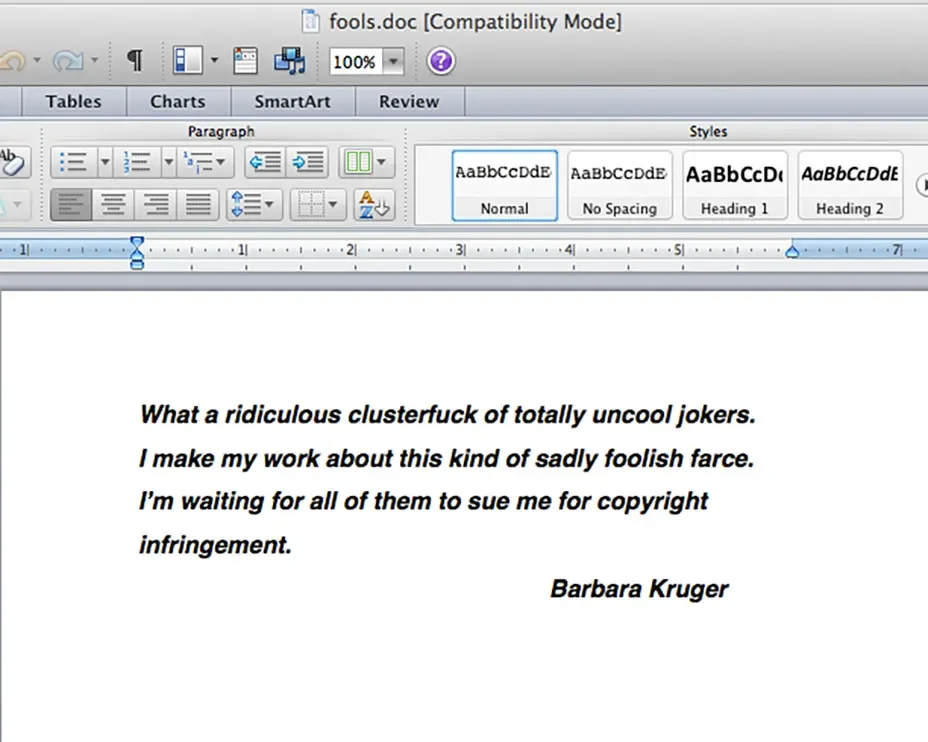 Barbara Kruger’s fools.doc (2013). Source: artnet